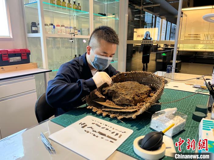 4月22日,重庆中国三峡博物馆在展厅内设置金属修复实验室,文保工作者展开修复工作。中新社记者 钟旖 摄